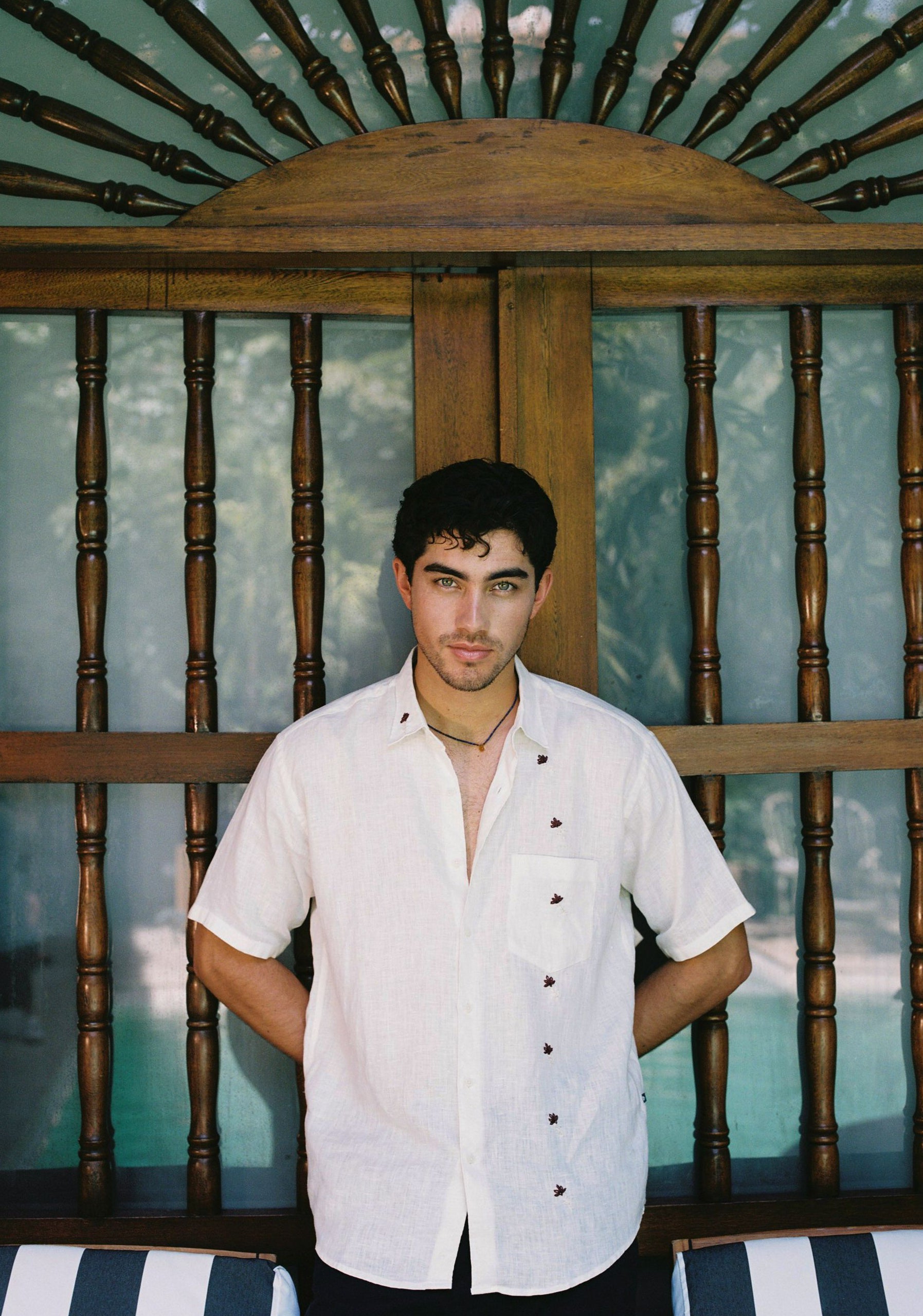 Camisa 100% lino con bordados elaborados por artesanos, ideal para un look fresco y elegante. Su tejido natural es ligero, transpirable y resistente, ofreciendo gran comodidad. Presenta un clásico cuello francés, bolsillo en el pecho, manga corta con dobladillo y un diseño frontal limpio para un estilo más relajado. La espalda cuenta con una pieza estructural y pliegue para mayor libertad de movimiento.