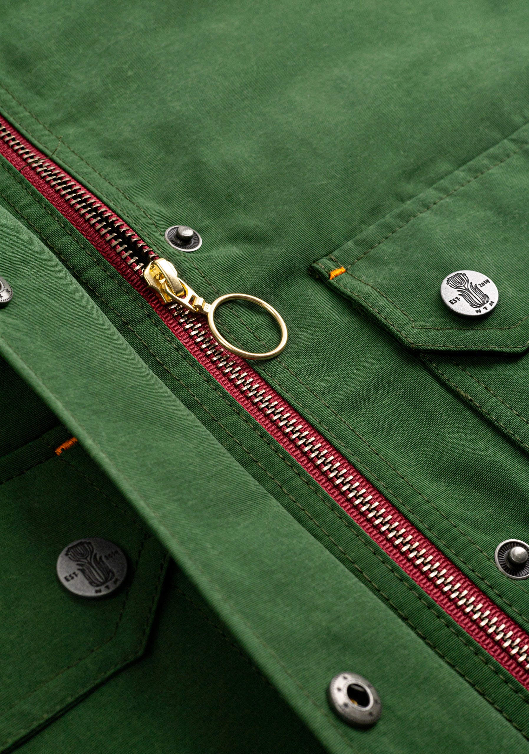 Hecha con tela japonesa tipo Kraft Tex, esta chaqueta tiene un acabado único y es parte de la Colección Whitman. Un esencial versátil para cualquier guardarropa.