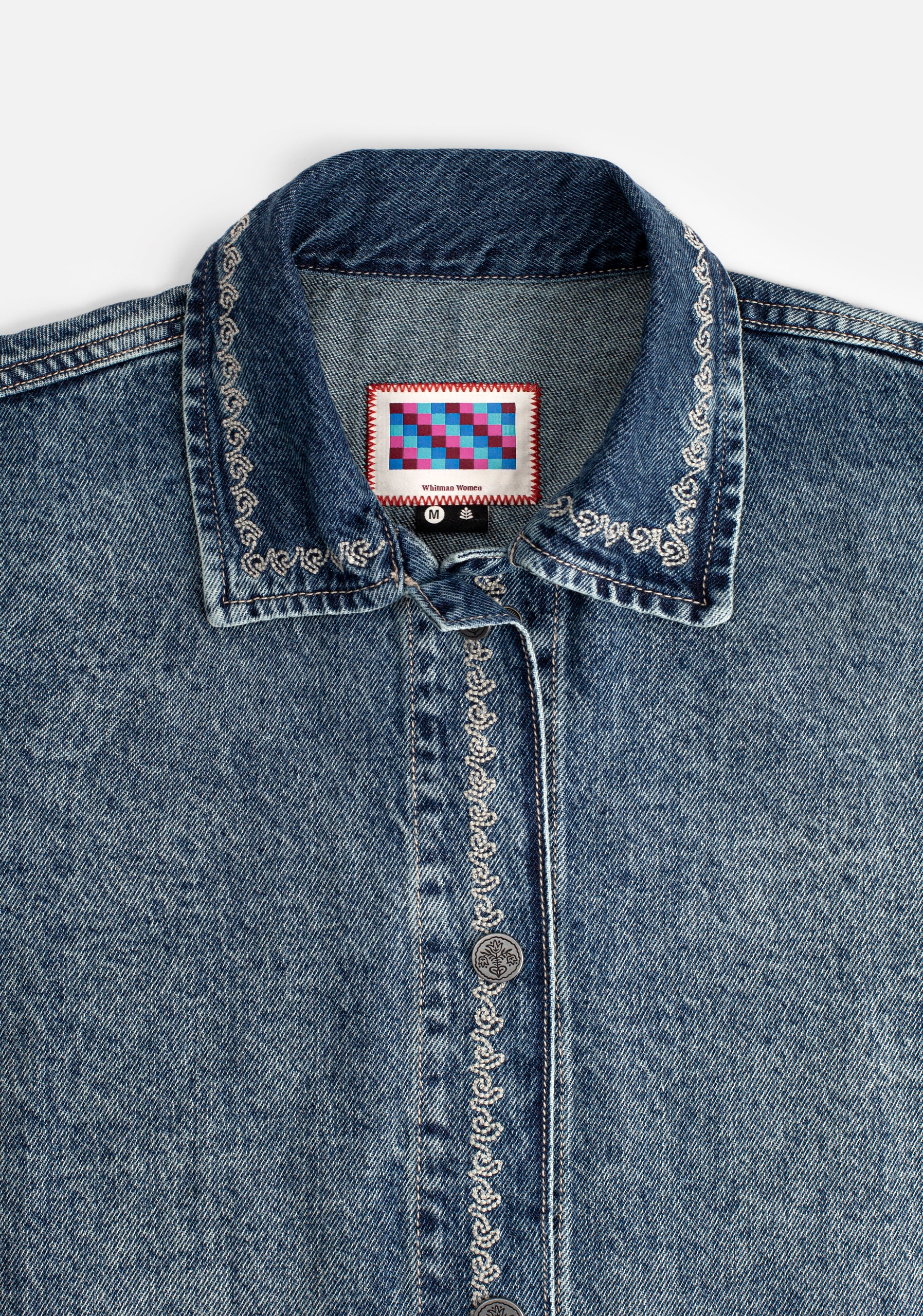 - Bordados en bolsillos, cuello y cierre.