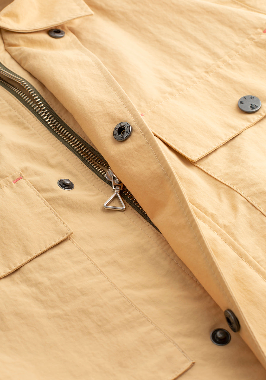 La Chaqueta Nebraska está hecha para acompañarte en todo momento. Su diseño utilitario incluye varios bolsillos funcionales al frente, broches metálicos y un cuello camisero que le da un toque clásico. Está confeccionada en una tela repelente al agua y al viento, perfecta para los días impredecibles.